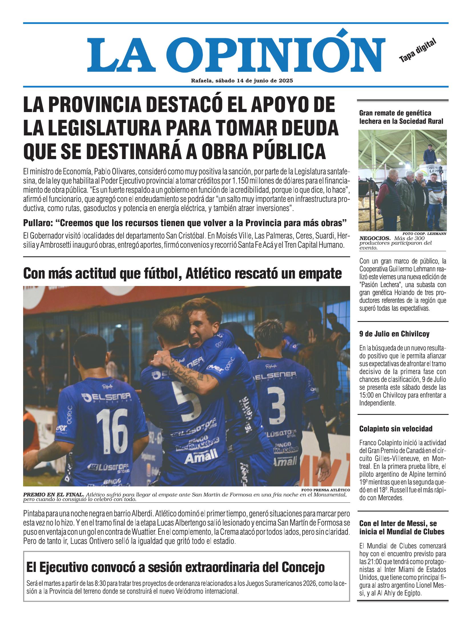Edición del Sábado 14 de Junio de 2025 - N° Tapa 14