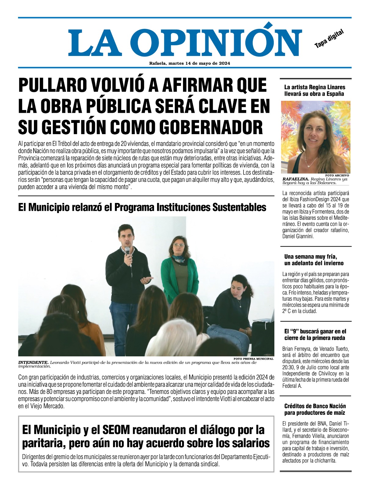 Edición del Martes 14 de Mayo de 2024 - N° Tapa