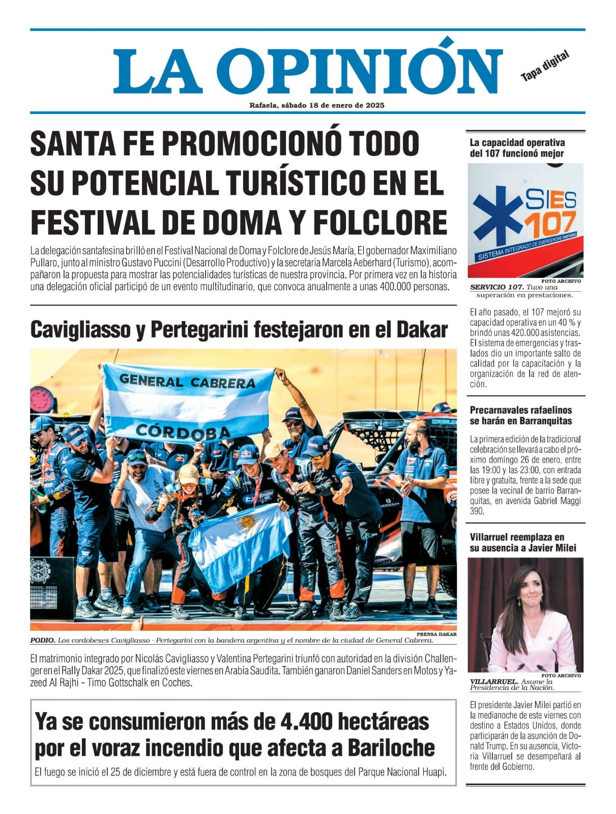 Edición del Sábado 18 de Enero de 2025 - N° TAPA 18