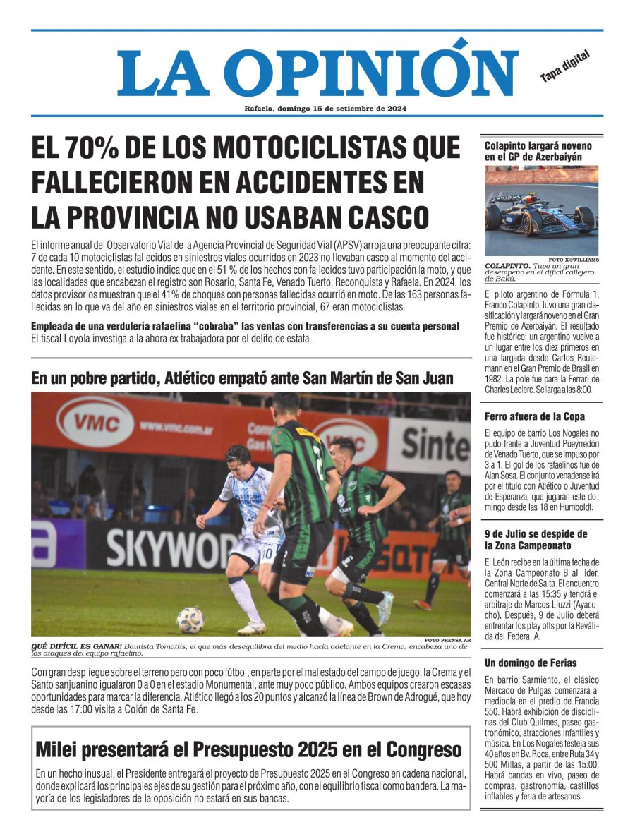 Edición del Domingo 15 de Septiembre de 2024 - N° Tapa 15