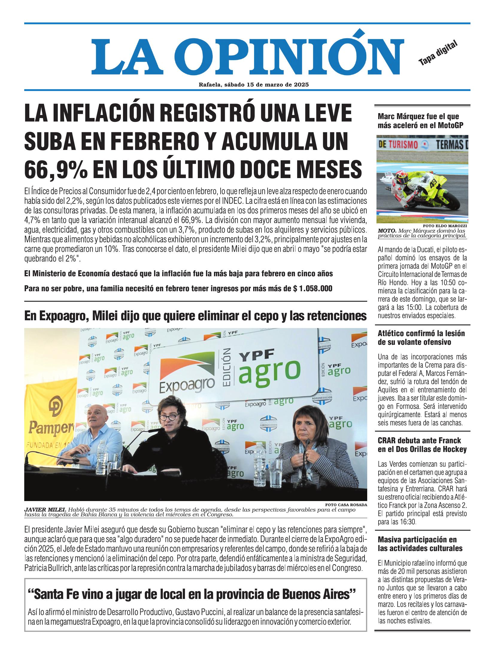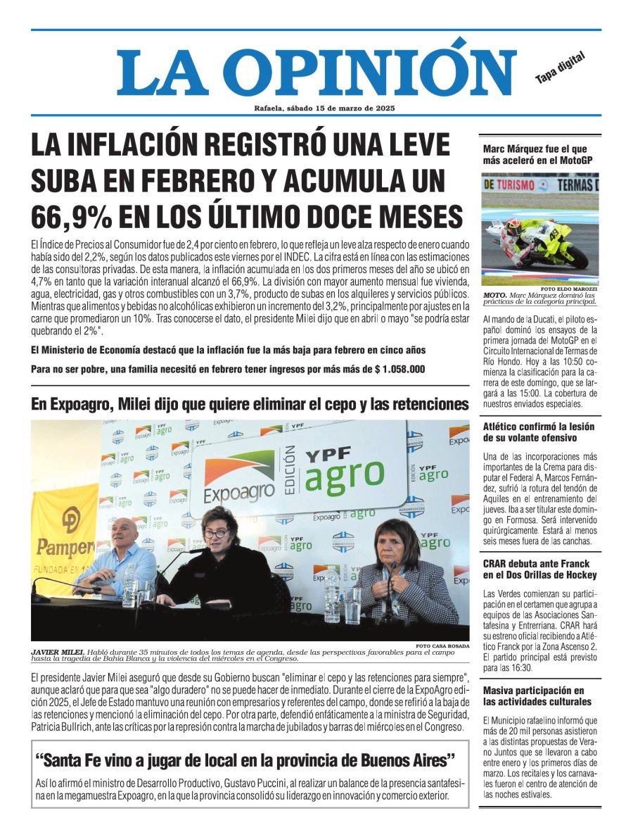 Edición del Sábado 15 de Marzo de 2025 - N° Tapa 15