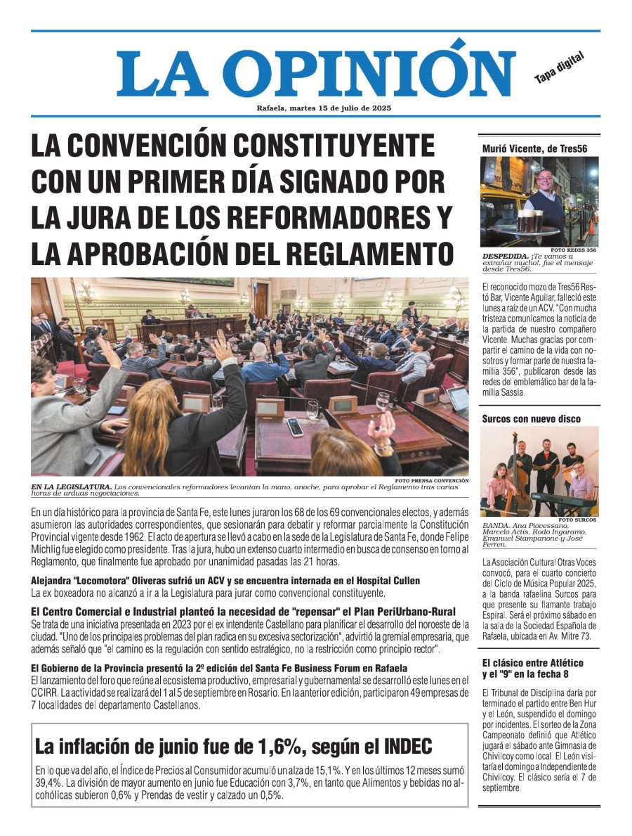 Edición del Martes 15 de Julio de 2025 - N° Tapa 15