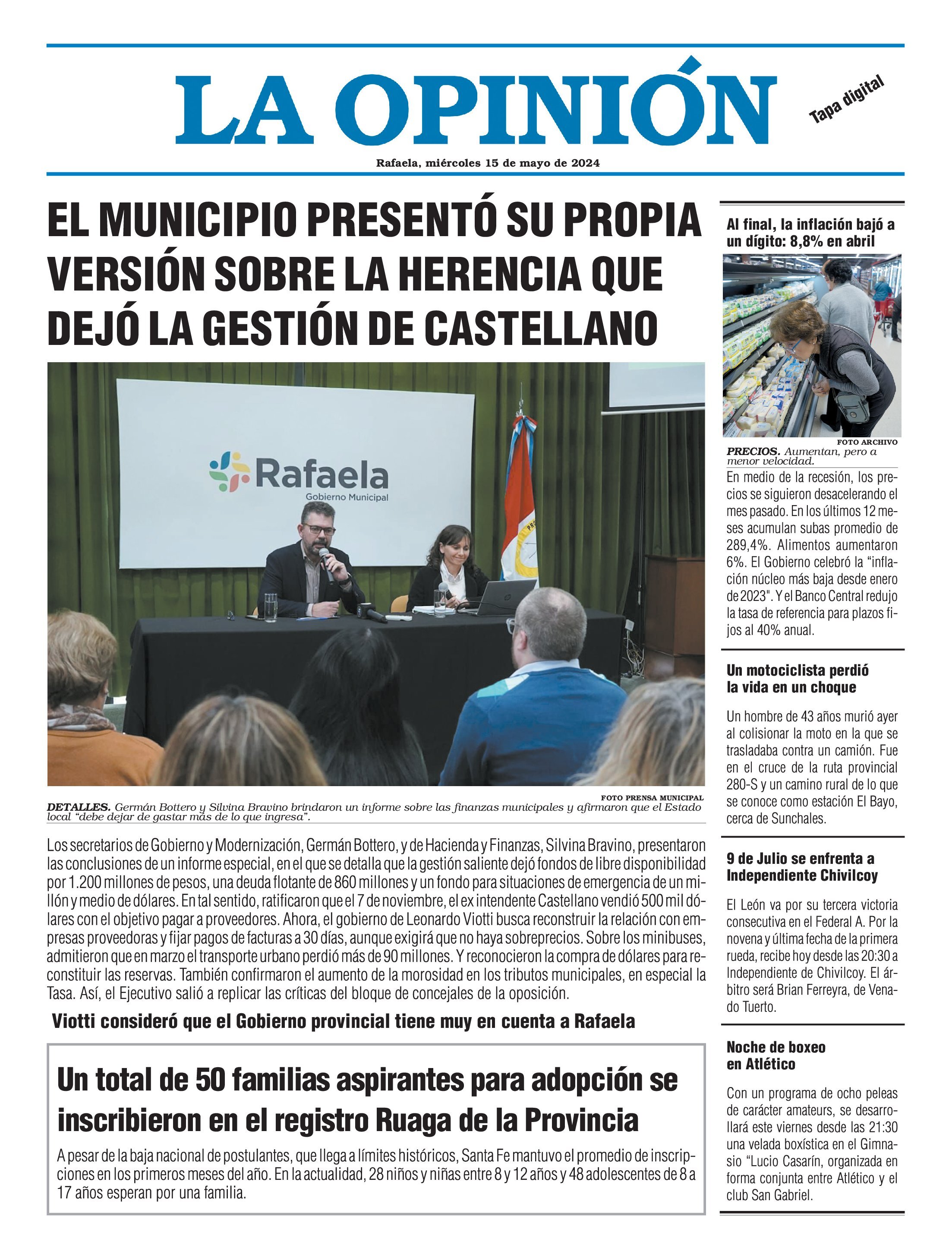 Edición del Miércoles 15 de Mayo de 2024 - N° Tapa