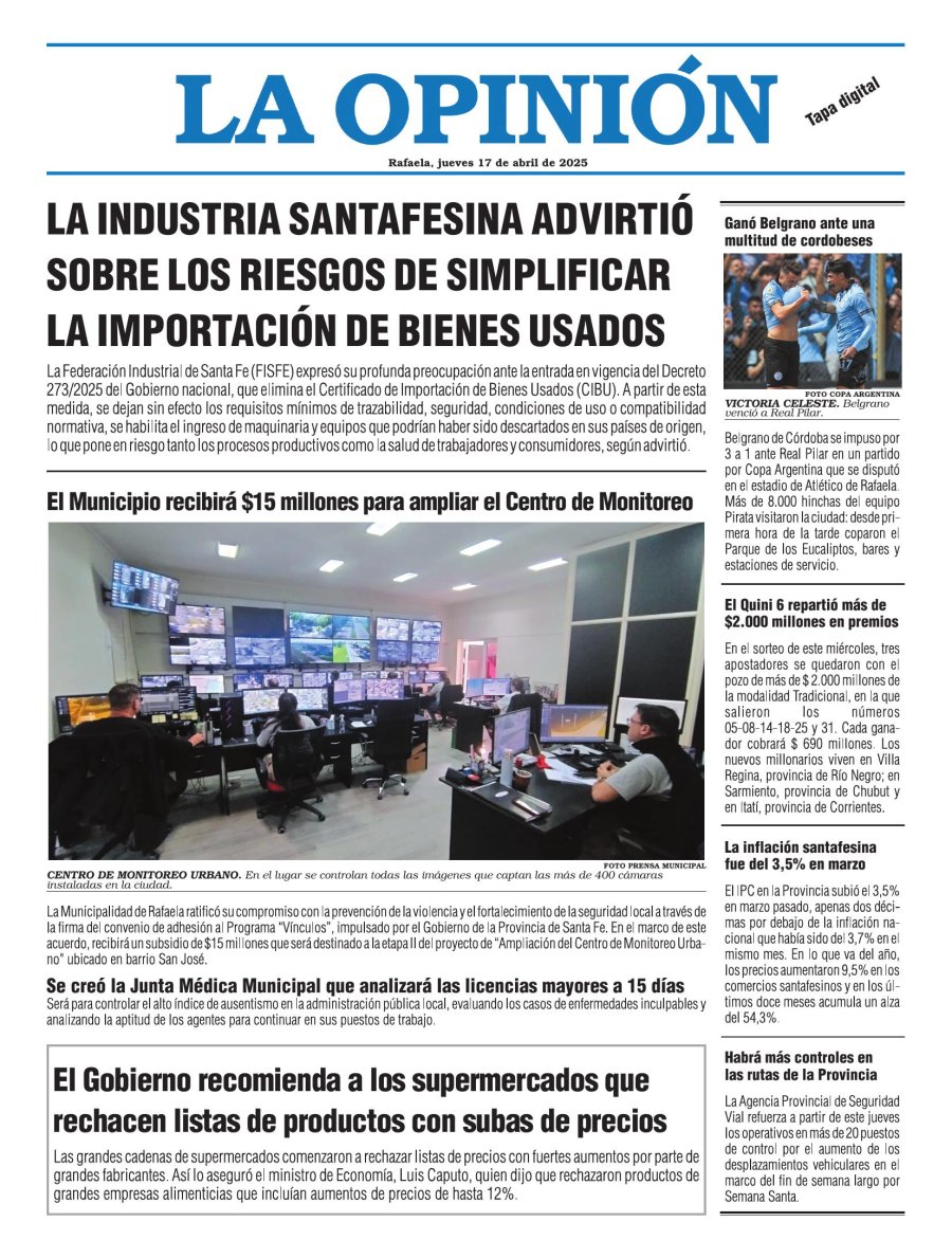 Edición del Jueves 17 de Abril de 2025 - N° Tapa 17