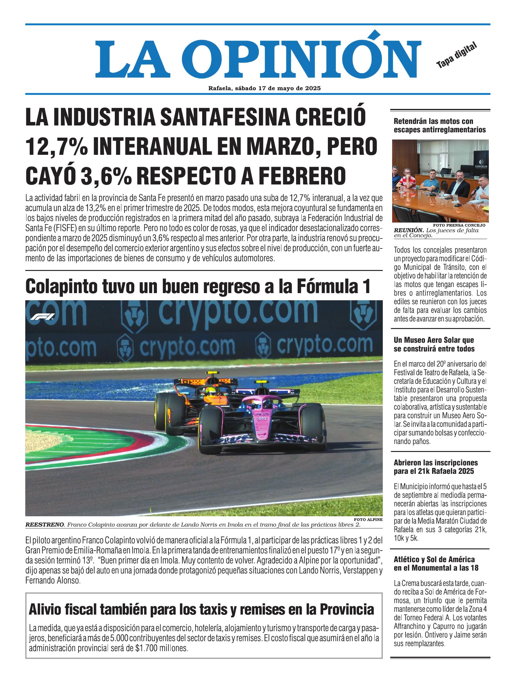 Edición del Sábado 17 de Mayo de 2025 - N° Tapa 17