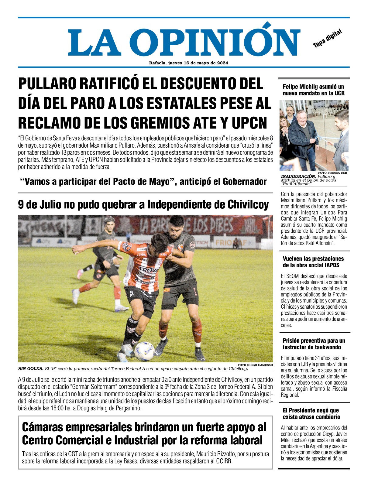 Edición del Jueves 16 de Mayo de 2024 - N° Tapa