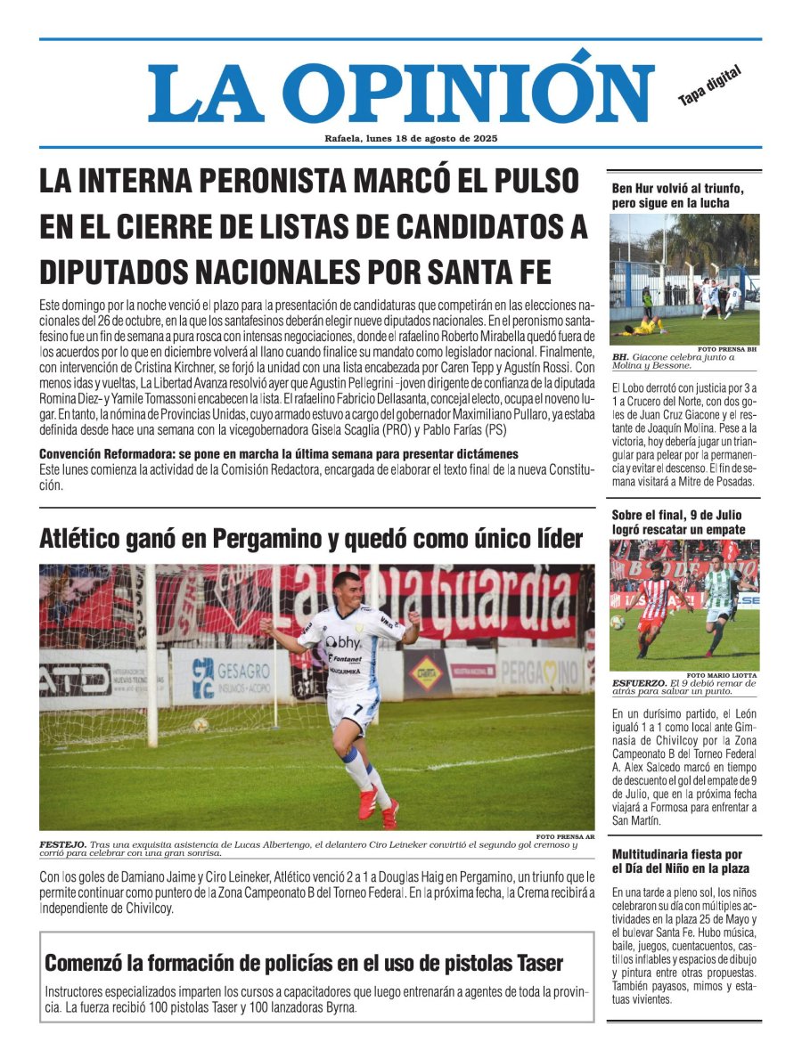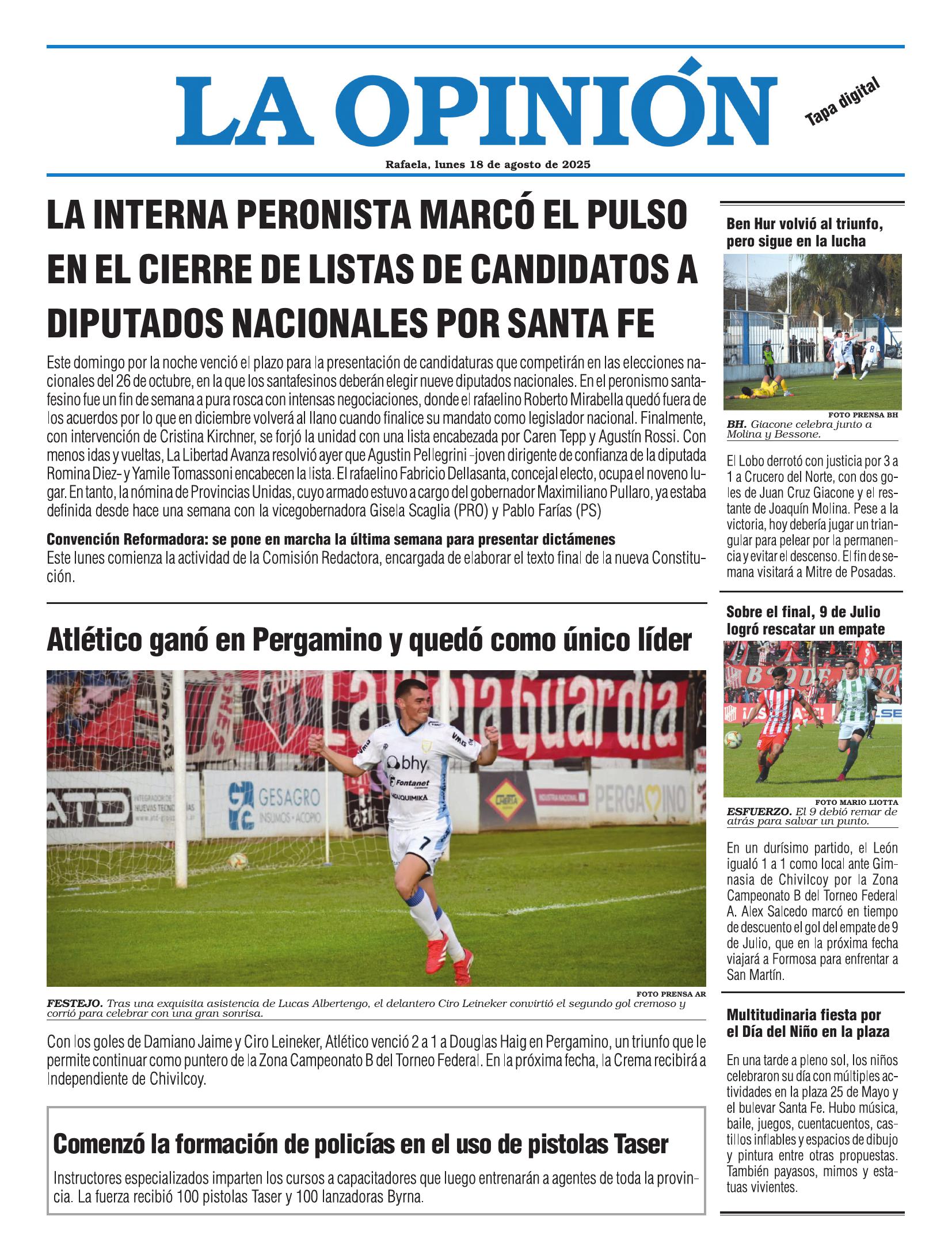 Edición del Lunes 18 de Agosto de 2025 - N° Tapa 18