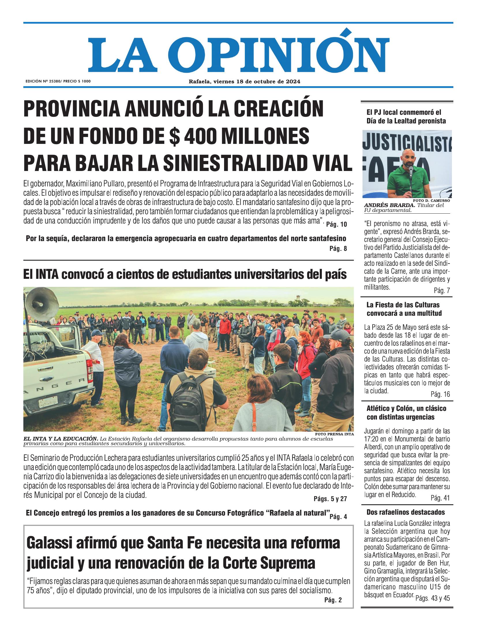Edición del Viernes 18 de Octubre de 2024 - N° Tapa 18