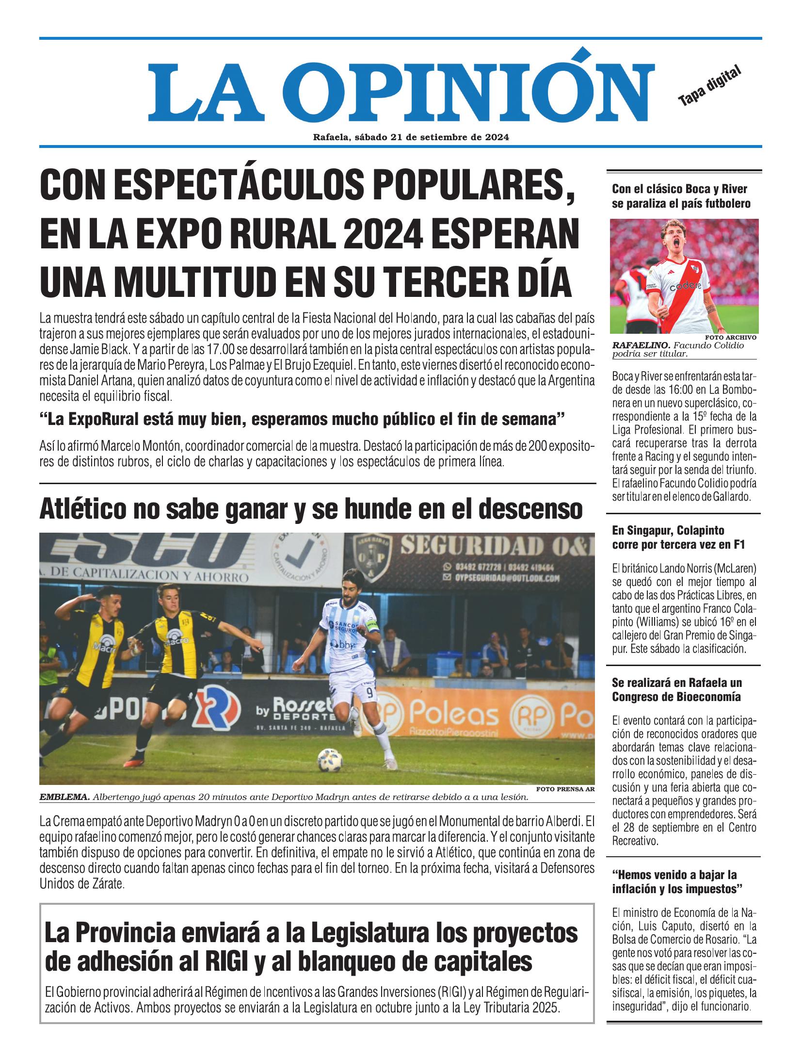 Edición del Sábado 21 de Septiembre de 2024 - N° Tapa 21