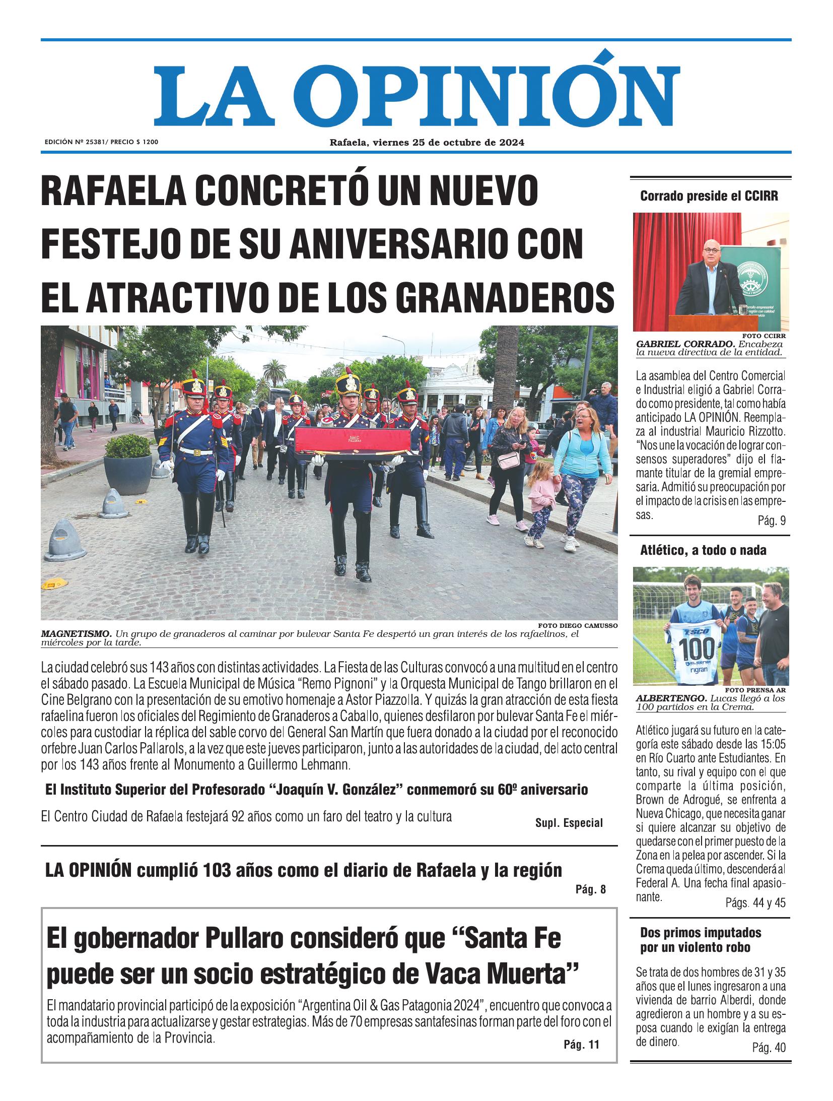 Edición del Viernes 25 de Octubre de 2024 - N° Tapa 25