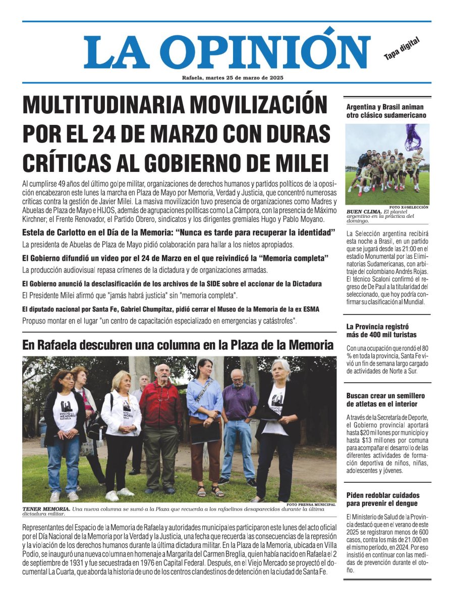 Edición del Martes 25 de Marzo de 2025 - N° Tapa 25