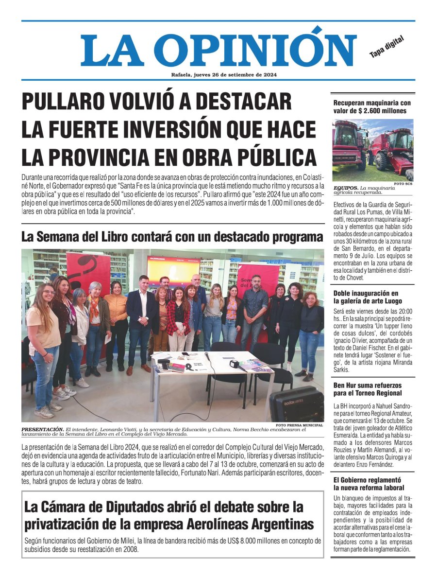 Edición del Jueves 26 de Septiembre de 2024 - N° Tapa 26