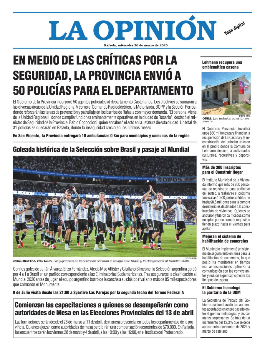 Edición del Miércoles 26 de Marzo de 2025 - N° Tapa 26