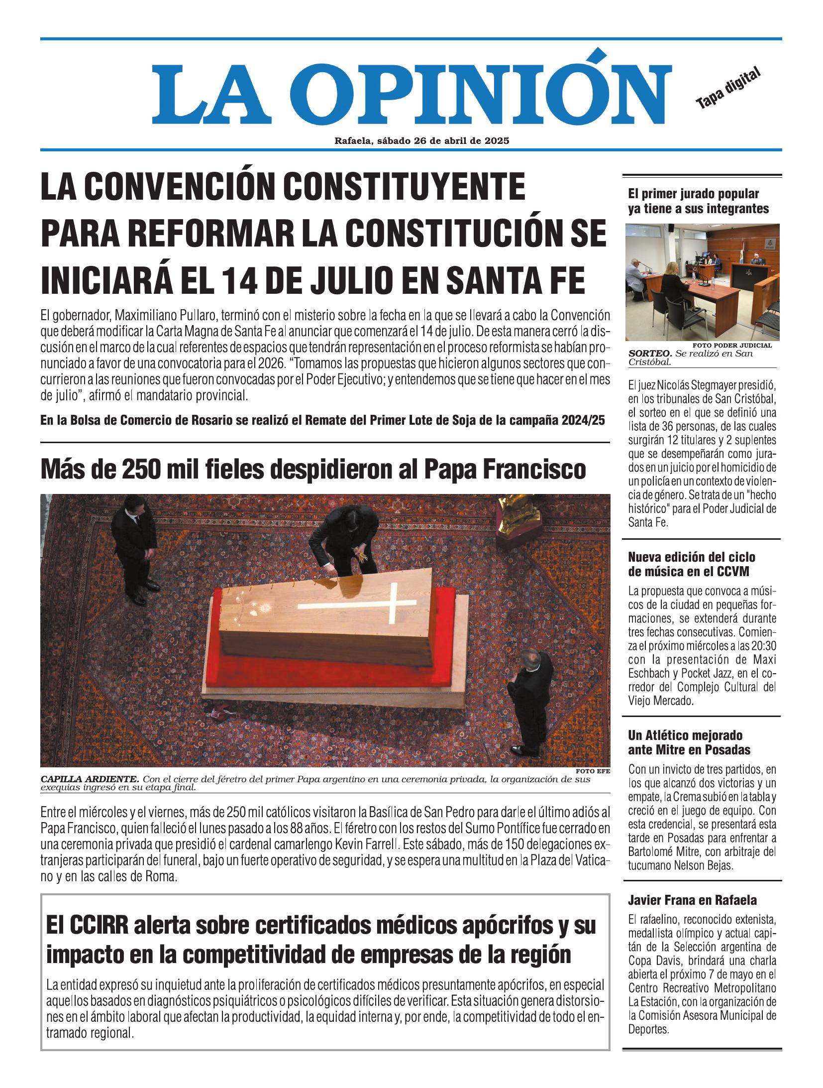 Edición del Sábado 26 de Abril de 2025 - N° Tapa 26