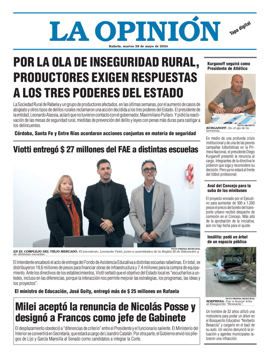 Edición del Martes 28 de Mayo de 2024 - N° Tapa