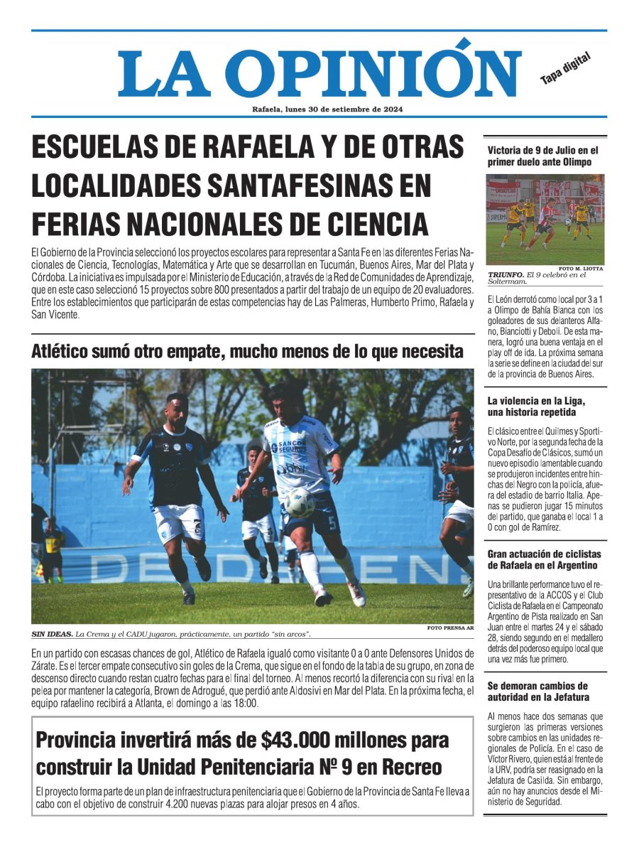 Edición del Lunes 30 de Septiembre de 2024 - N° Tapa 30