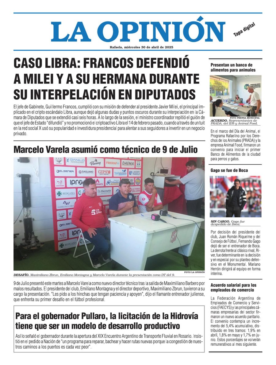 Edición del Miércoles 30 de Abril de 2025 - N° Tapa 30