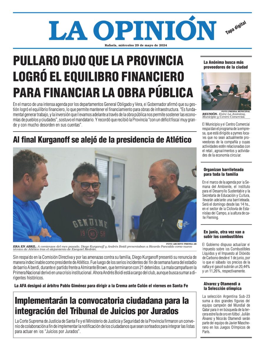 Edición del Miércoles 29 de Mayo de 2024 - N° Tapa