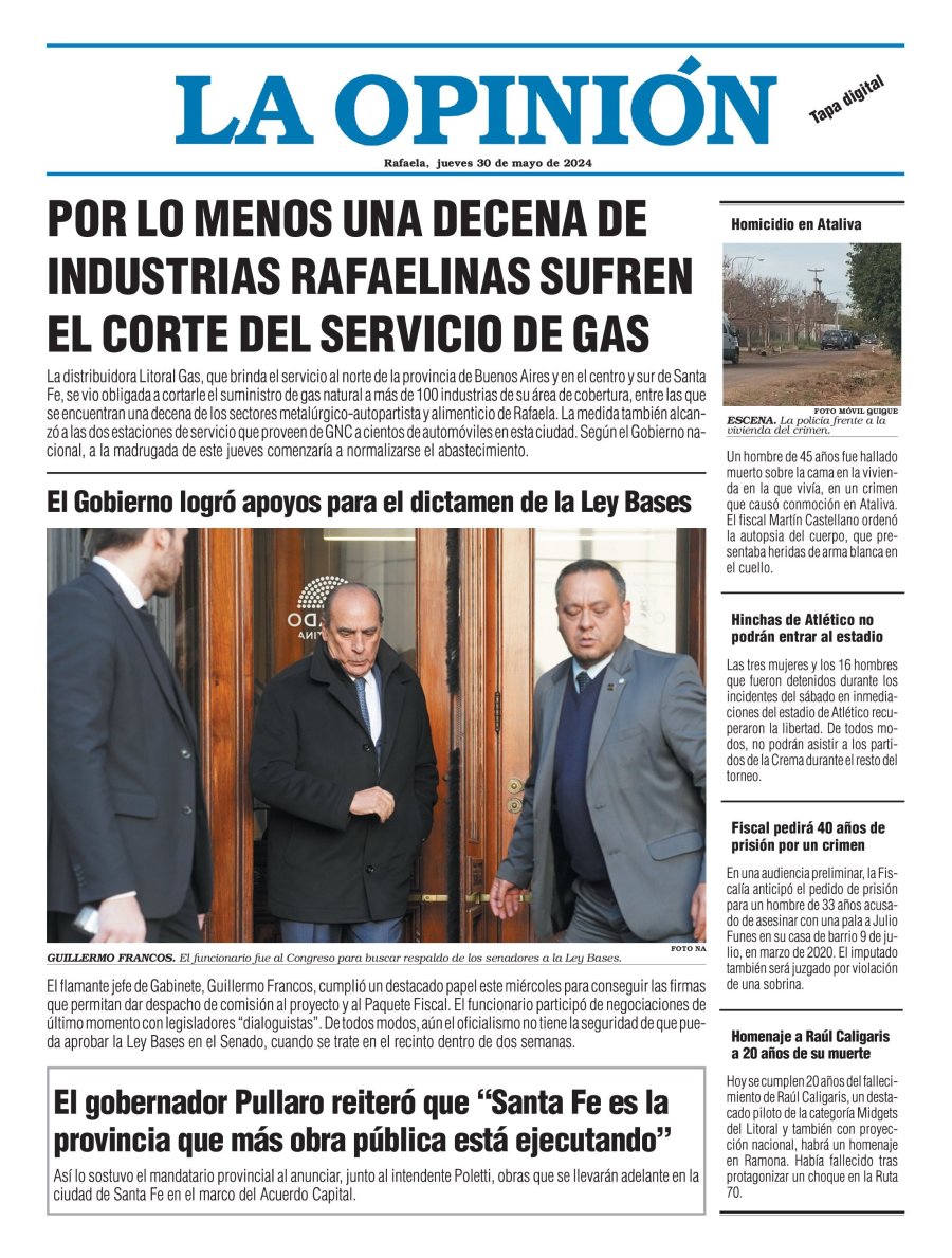 Edición del Jueves 30 de Mayo de 2024 - N° Tapa