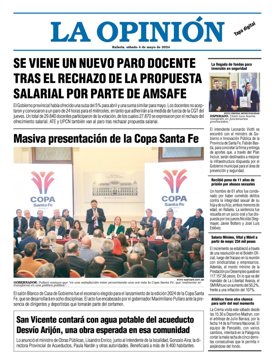 Edición del Sábado 4 de Mayo de 2024 - N° Tapa