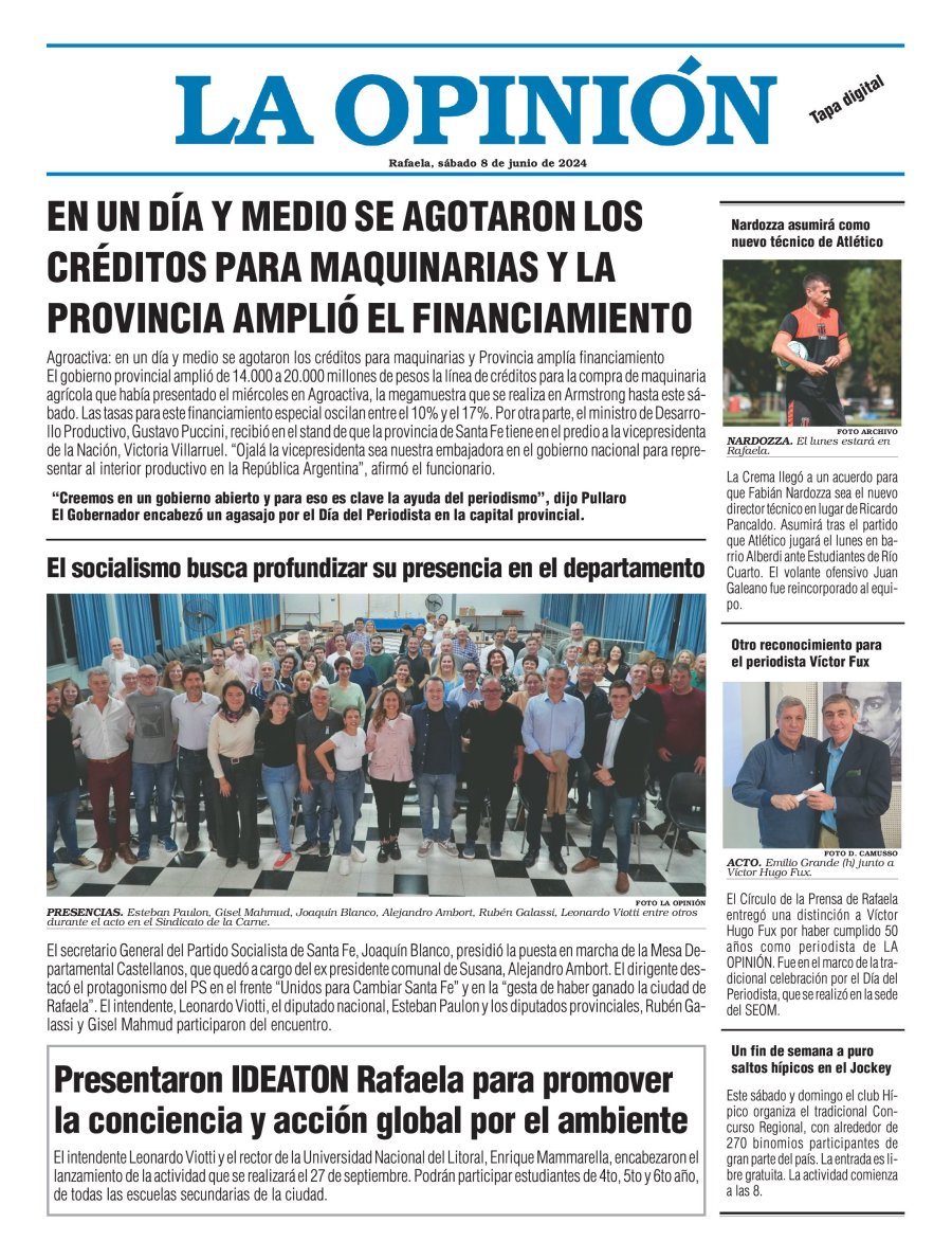 Edición del Sábado 8 de Junio de 2024 - N° Tapa
