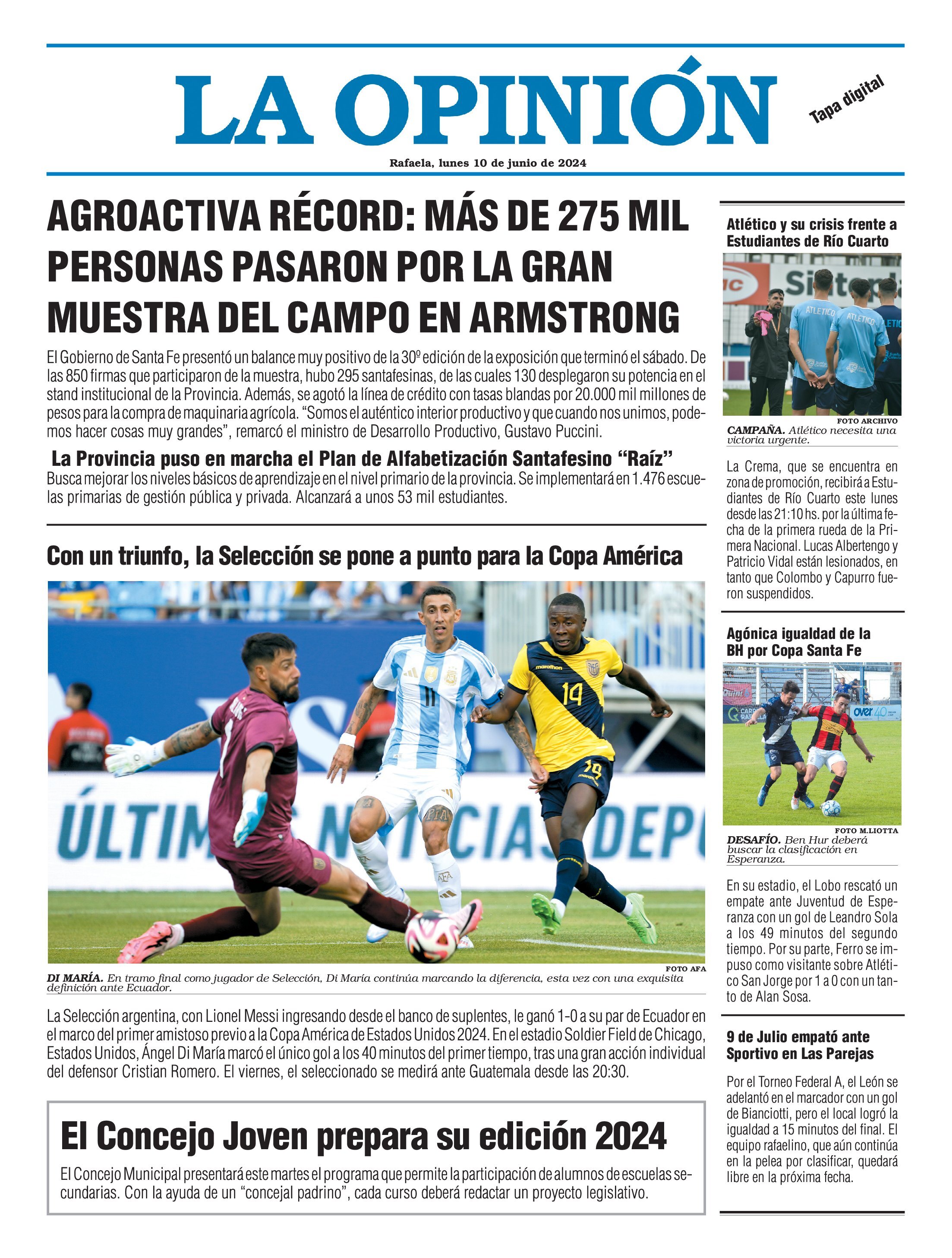 Edición del Lunes 10 de Junio de 2024 - N° Tapa