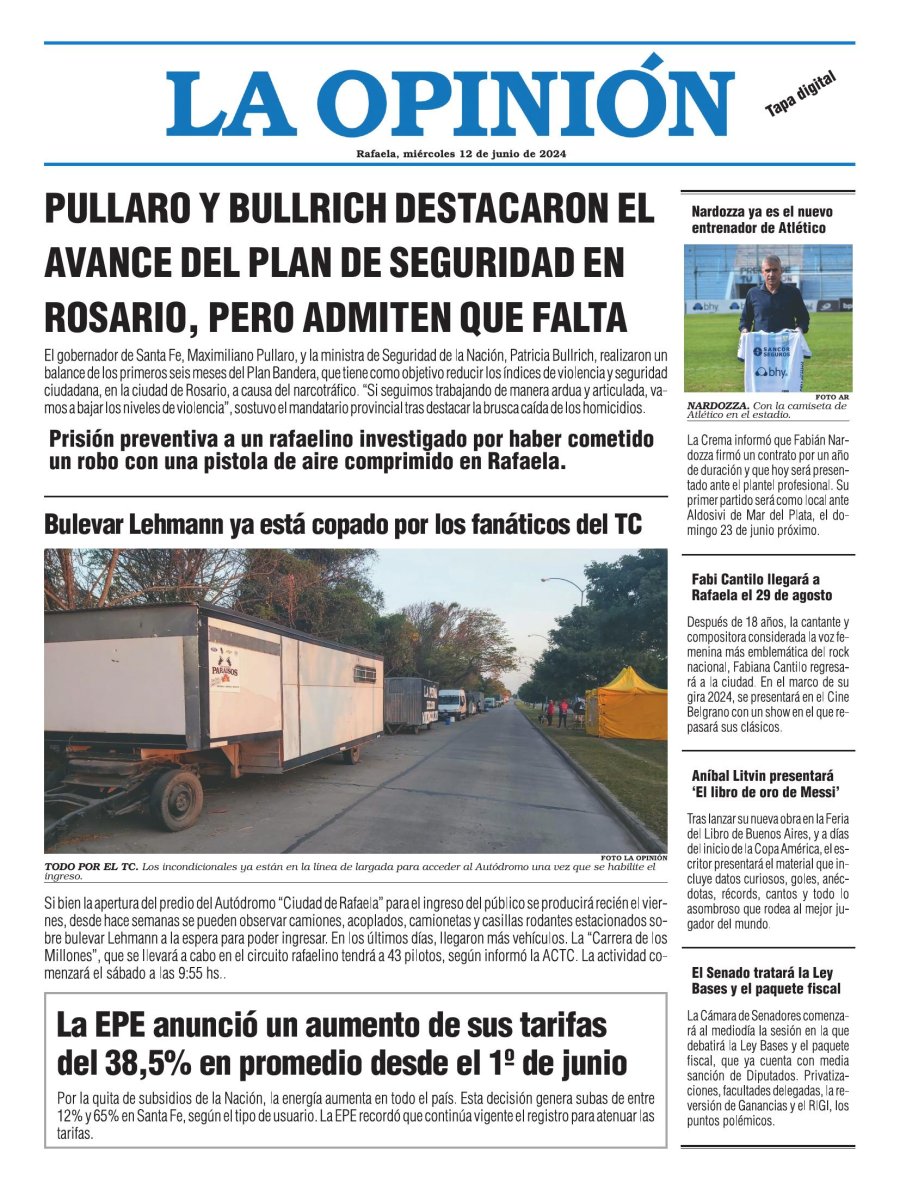 Edición del Miércoles 12 de Junio de 2024 - N° Tapa