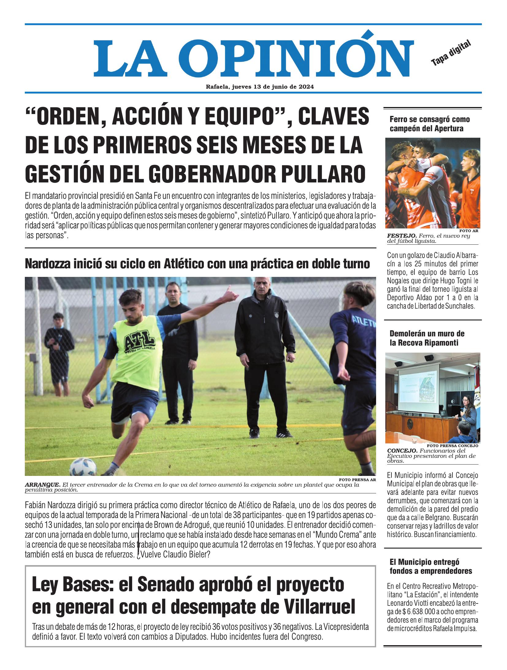 Edición del Jueves 13 de Junio de 2024 - N° Tapa