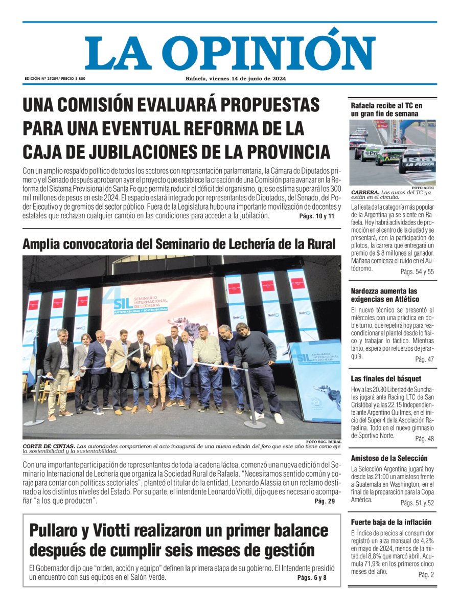 Edición del Viernes 14 de Junio de 2024 - N° Tapa