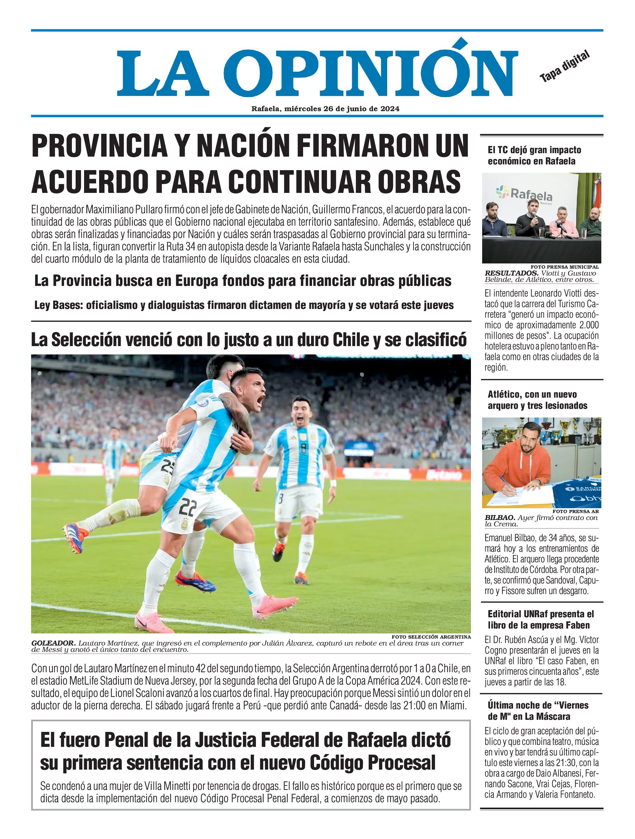 Edición del Miércoles 26 de Junio de 2024 - N° Tapa