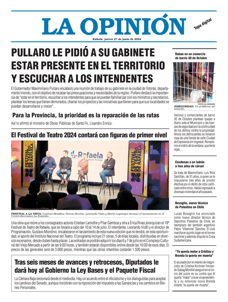Edición del Jueves 27 de Junio de 2024 - N° Tapa