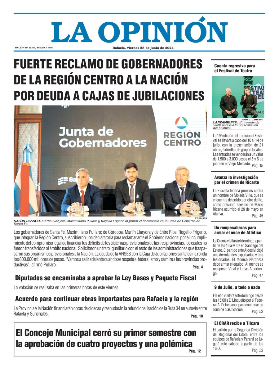 Edición del Viernes 28 de Junio de 2024 - N° Tapa