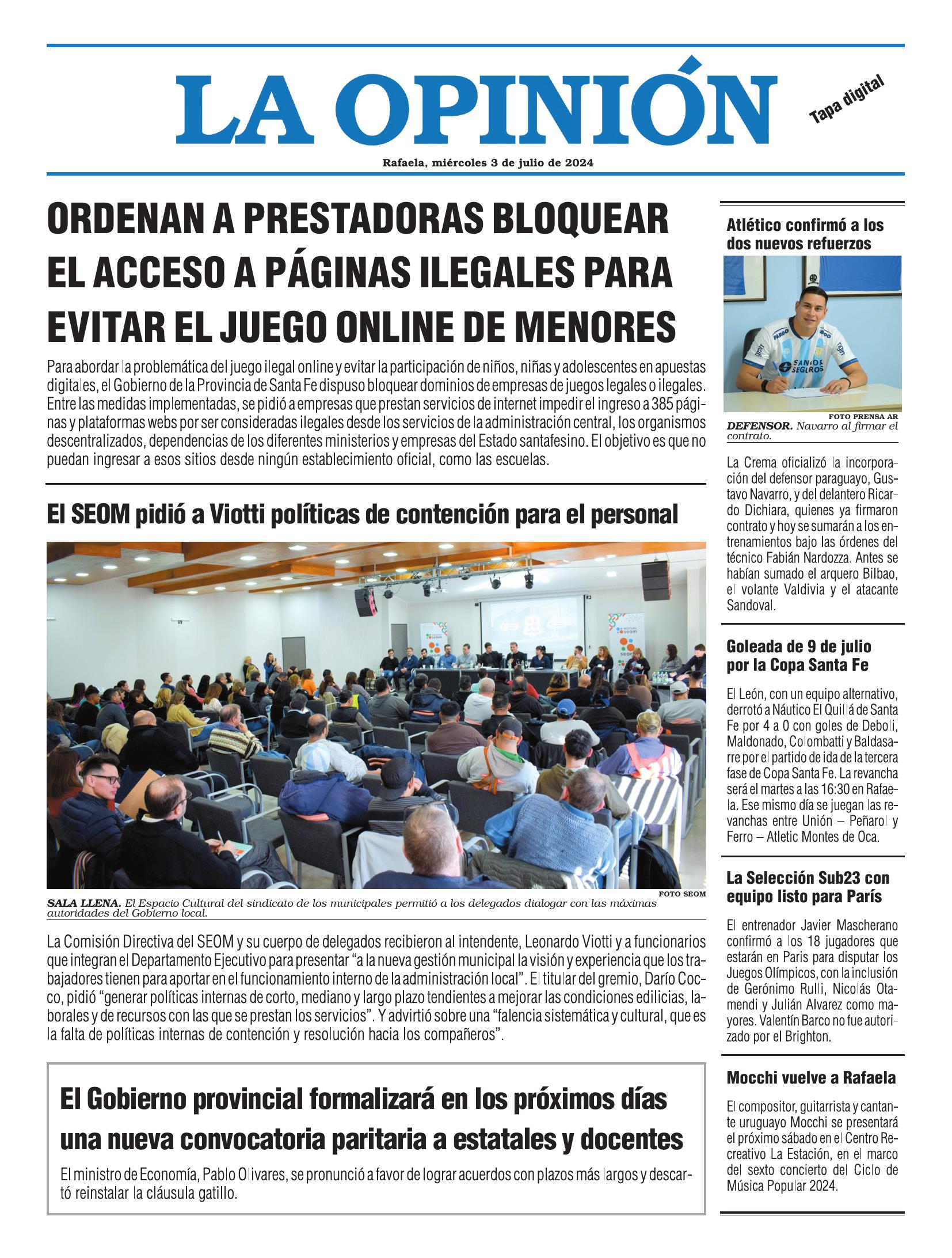 Edición del Miércoles 3 de Julio de 2024 - N° Tapa