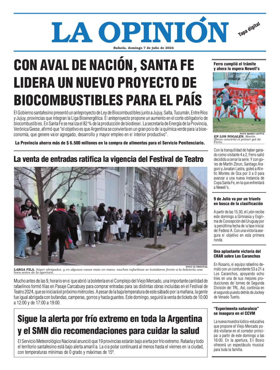 Edición del Domingo 7 de Julio de 2024 - N° Tapa