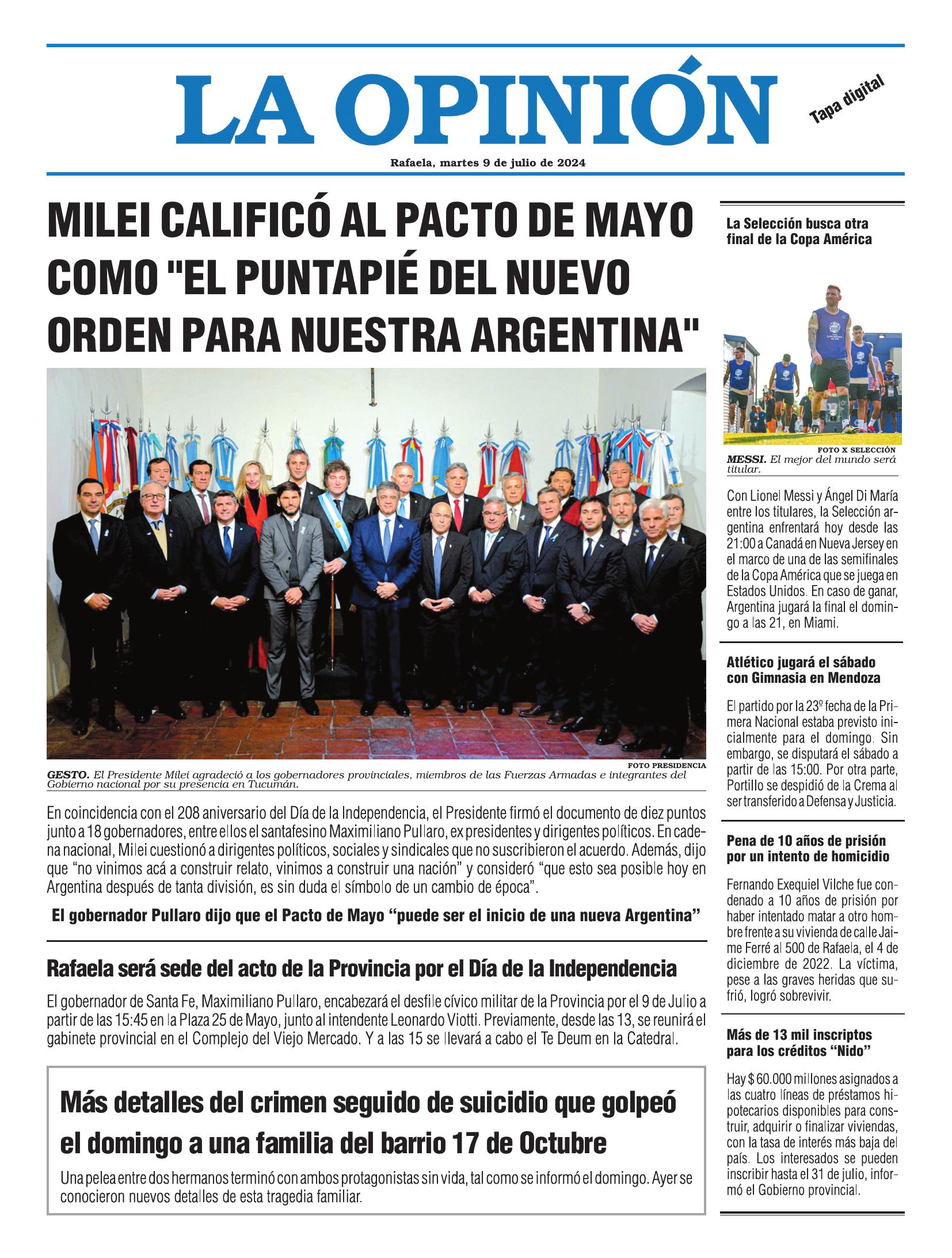 Edición del Martes 9 de Julio de 2024 - N° Tapa