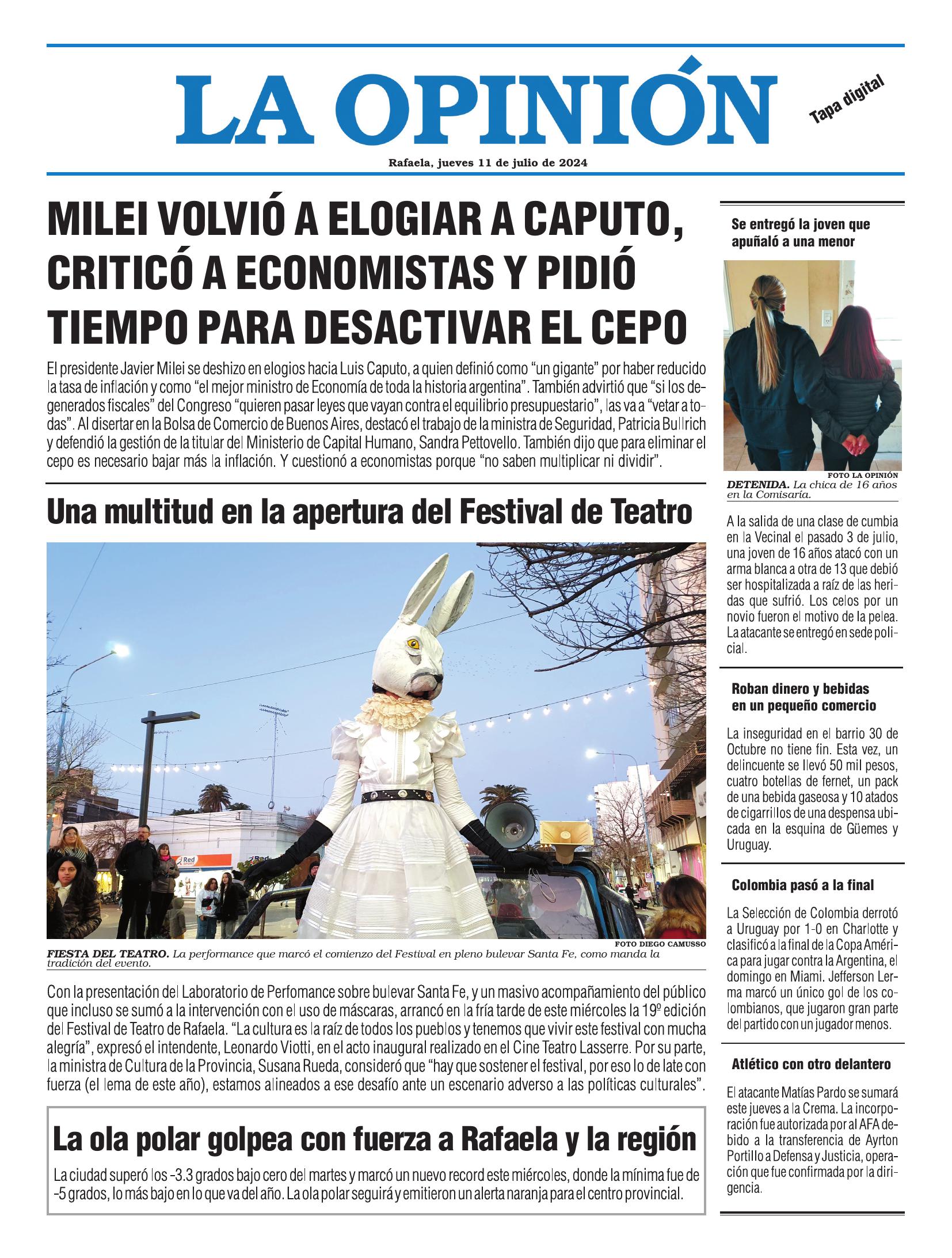 Edición del Jueves 11 de Julio de 2024 - N° Tapa