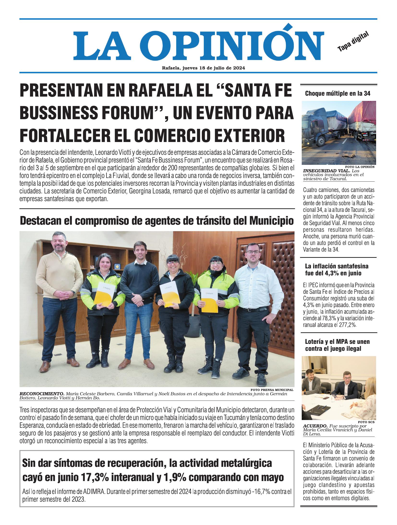 Edición del Jueves 18 de Julio de 2024 - N° Tapa