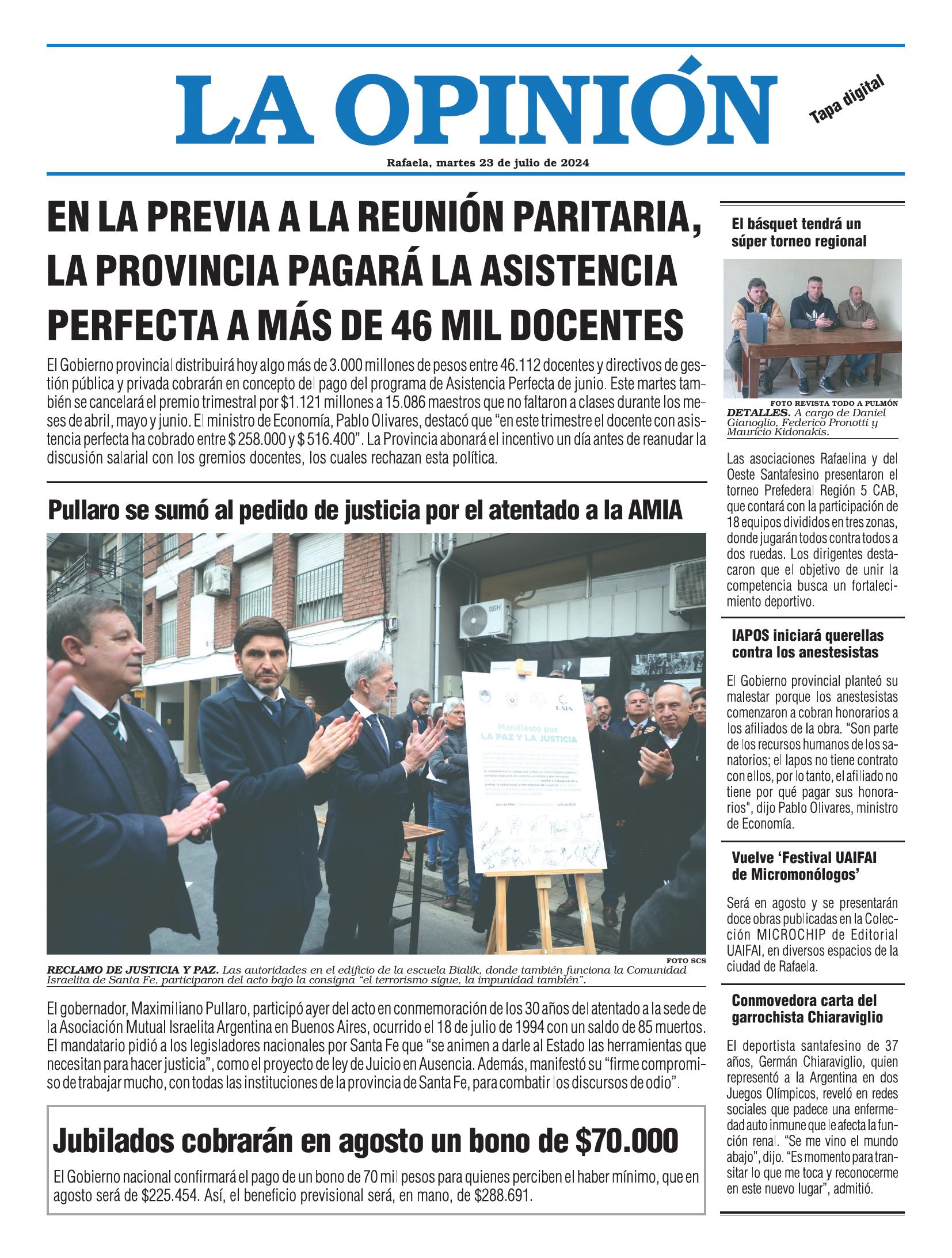 Edición del Martes 23 de Julio de 2024 - N° Tapa