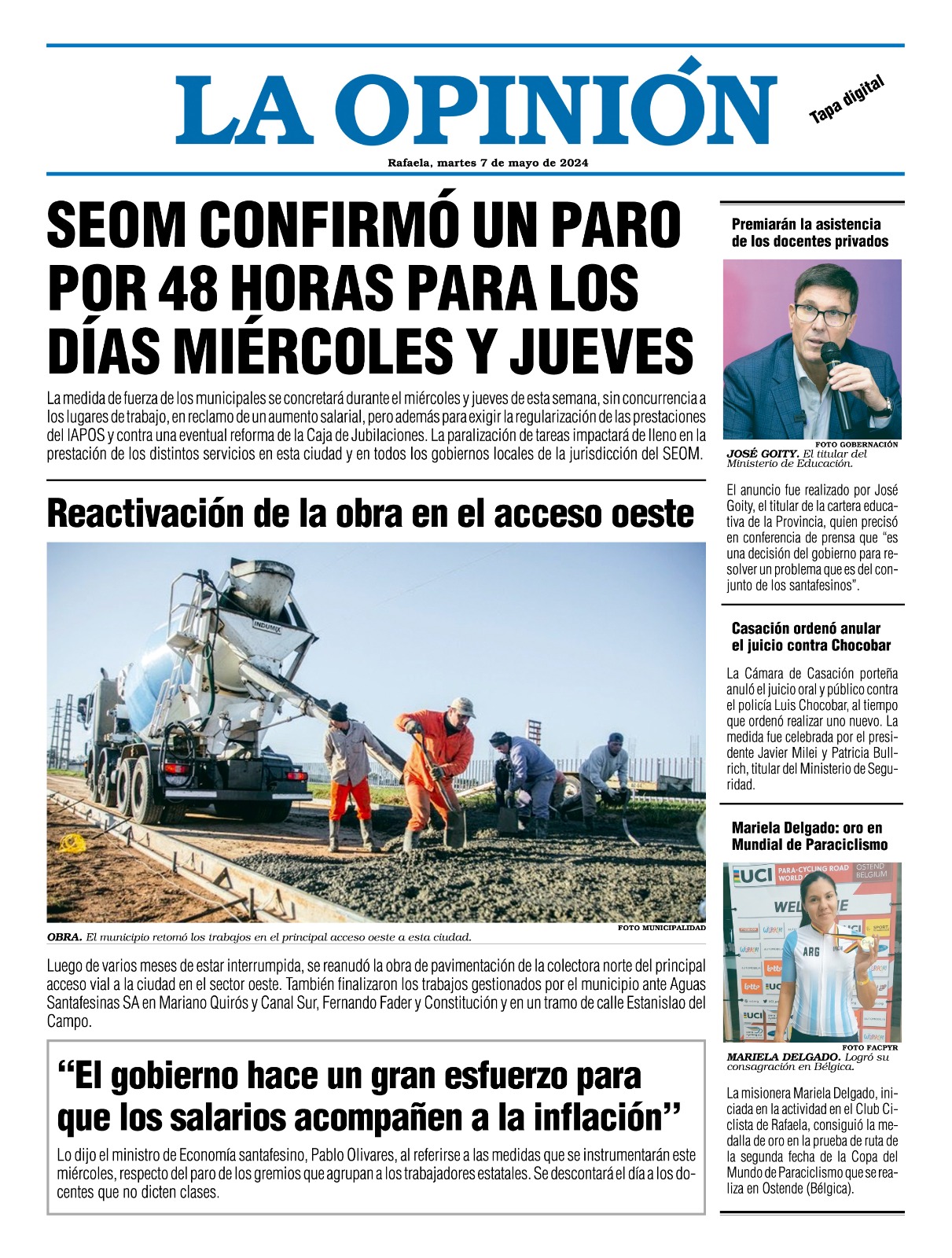 Edición del Martes 7 de Mayo de 2024 - N° Tapa