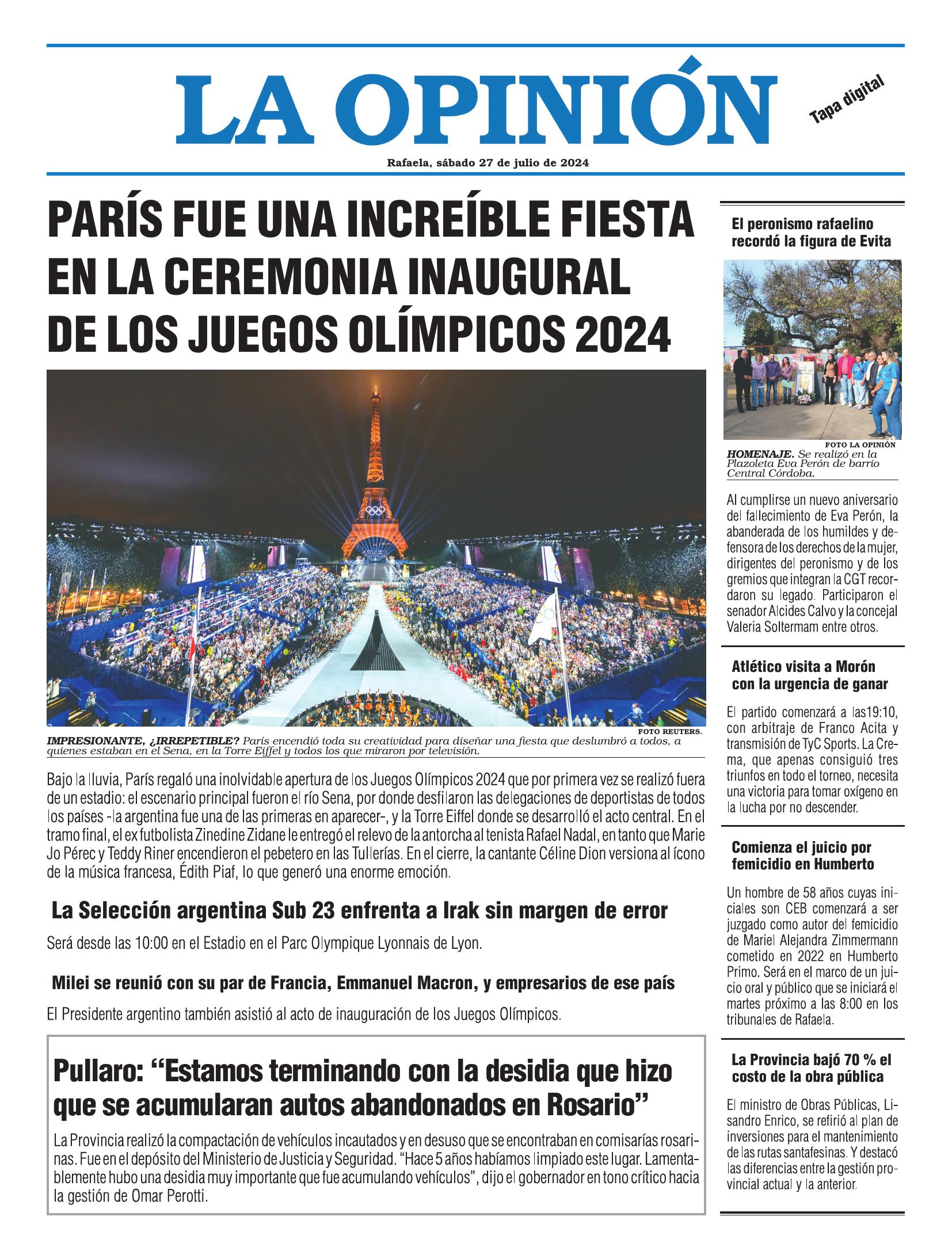 Edición del Sábado 27 de Julio de 2024 - N° Tapa