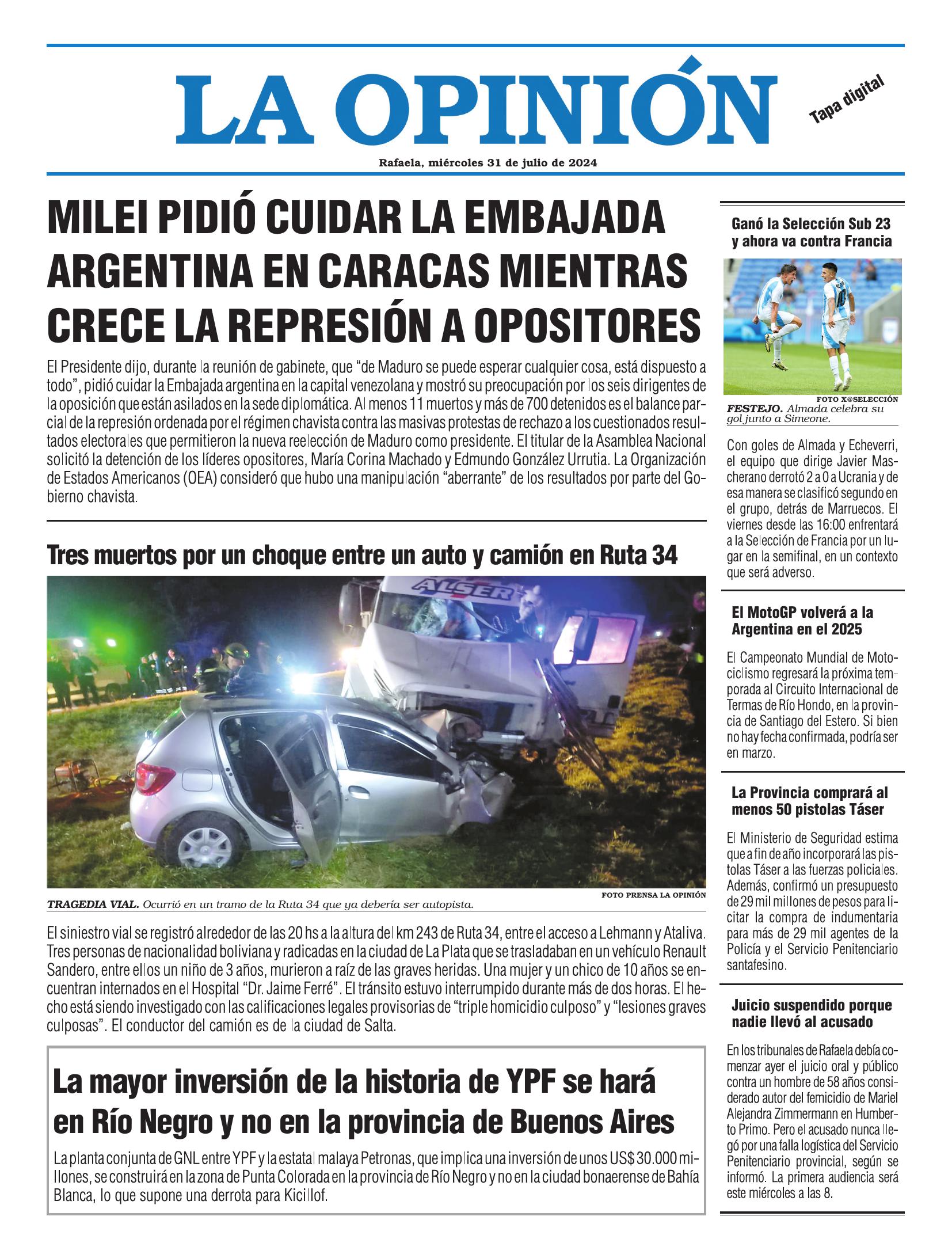 Edición del Miércoles 31 de Julio de 2024 - N° Tapa