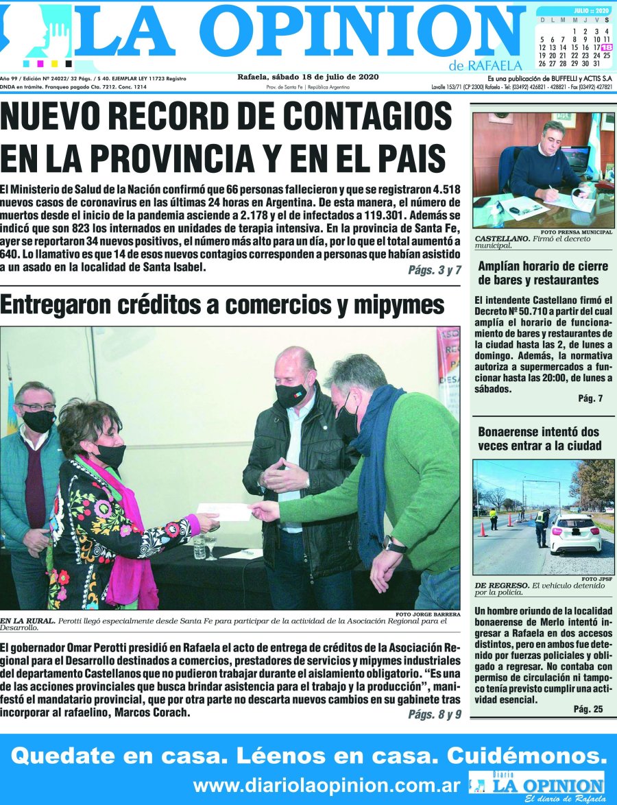 Edición del Sábado 18 de Julio de 2020 - N° TAPA DEL DIAL