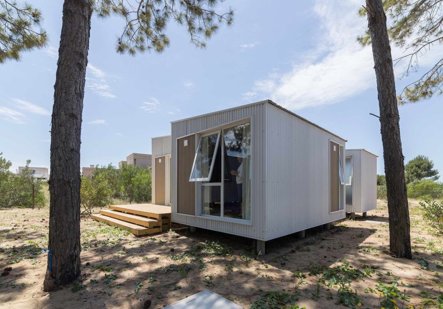 La casa se eleva sobre pilotes separándose del terreno, fortaleciendo dicho contraste entre la casa y el paisaje, generando el menor impacto sobre el terreno.
