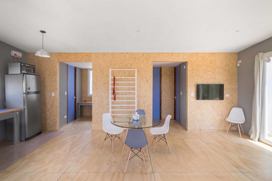 El proyecto se materializa con el sistema constructivo metálico Steel Framing, la envolvente se compone de diversas capas, cada una de las cuales resuelve distintas necesidades técnicas, hidrófugas, térmicas, etc. La elección del sistema constructivo y los materiales de terminación permiten fortalecer la estética contemporánea, obtener excelentes prestaciones técnicas, menores tiempos de construcción, disminuir la generación de desechos en obra y el impacto sobre el terreno.