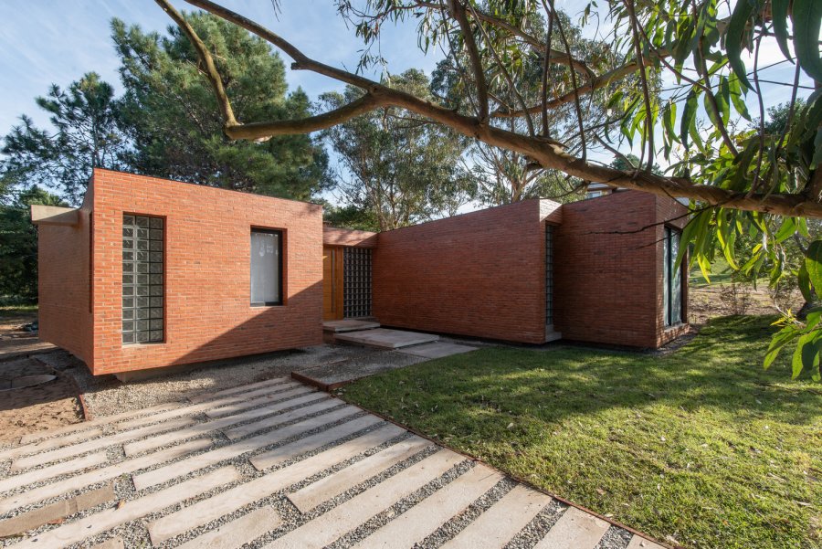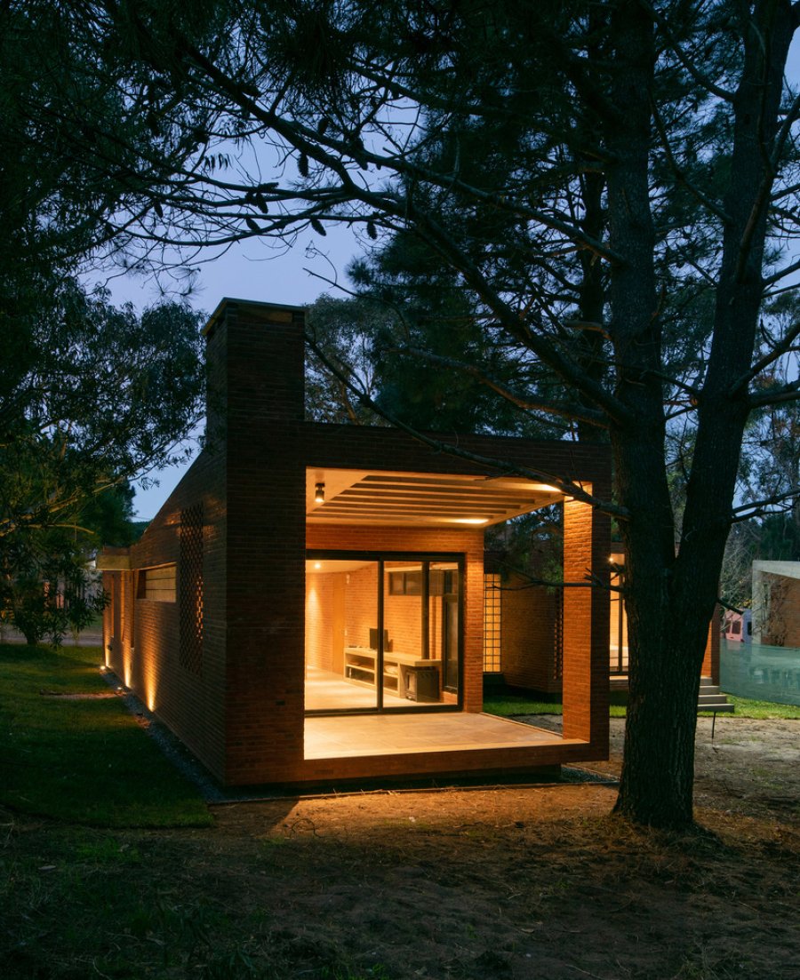 Las distintas trabas del ladrillo, permiten distintos juegos de luces y sombras al mismo tiempo que ocultan elementos de servicio, resolviendo distintos tipos de límite, porosidades y relieves sin perder la homogeneidad cromática-formal.