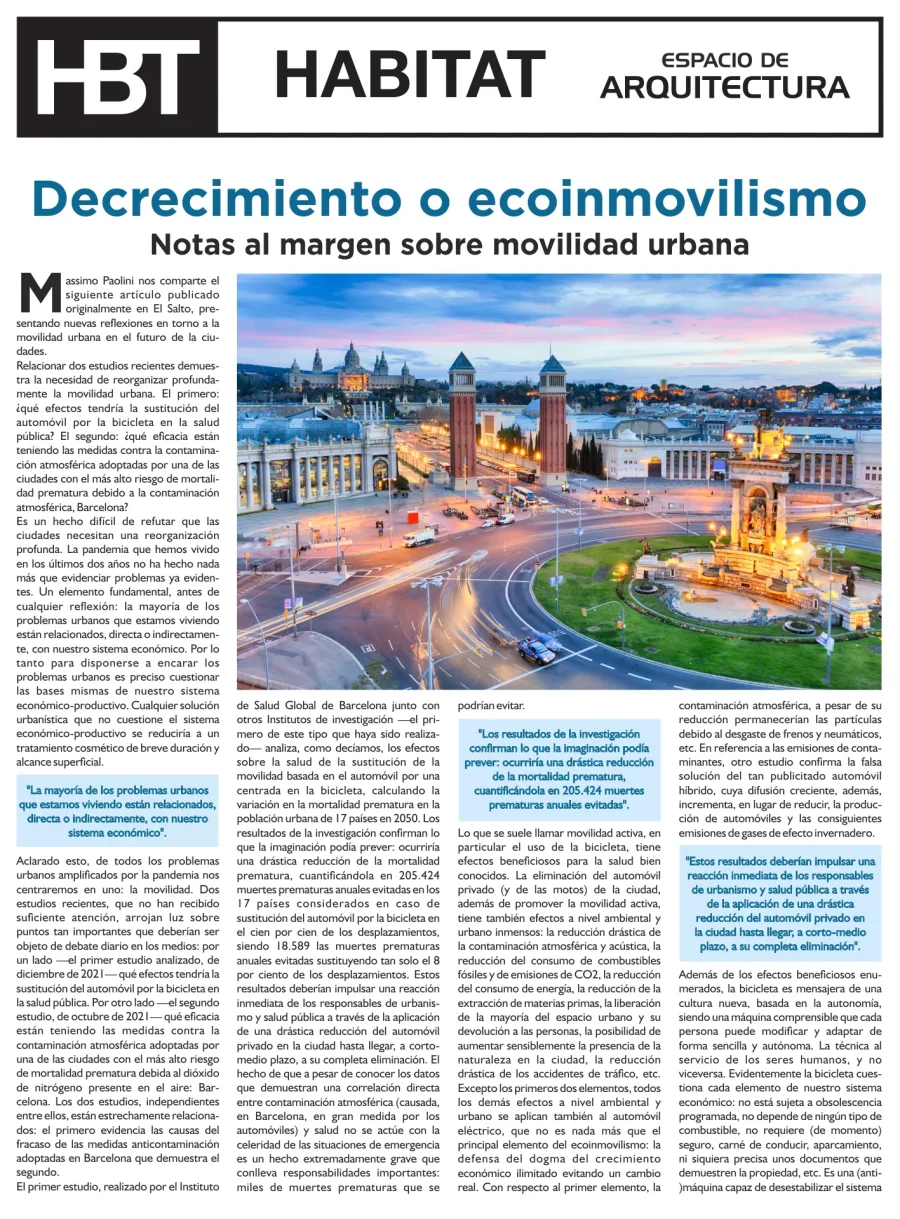 Decrecimiento o ecoinmovilismo: notas al margen sobre movilidad urbana