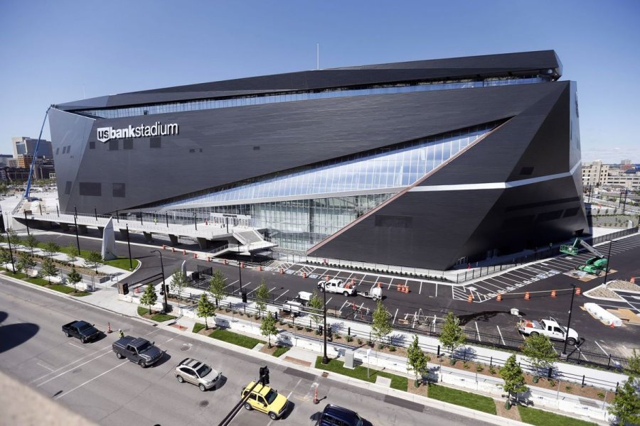 El nuevo estadio US Bank Stadium se caracteriza por sus protuberancias angulares, los revestimientos de cinc y la fuerte presencia del vidrio.