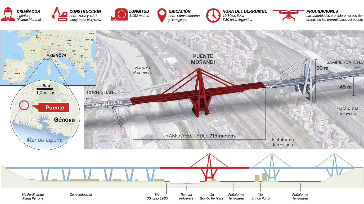 "El ingeniero Riccardo Morandi era un gran experto en estructuras, pero con el puente sobre el Polcevera tuvo que forzar la estática. Un puente con tensores es sostenido por tensores de metal. Morandi, con su gran competencia en materia de estática, quiso hacerlo en concreto. Es una solución arriesgada, porque el cemento trabaja en compresión, mientras en tracción se usa el metal. Su puente había sido comentado por esto mismo en las revistas especializadas", detalló Zoppi.