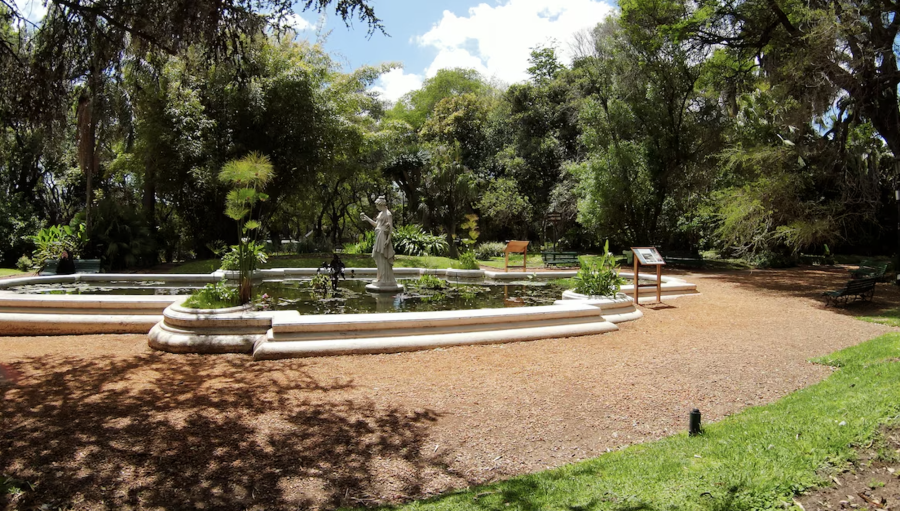 Una casona de estilo inglés es la pieza central del Botánico. Allí se encuentra la biblioteca infantil de la naturaleza, se dictan talleres y se realizan muestras de arte.