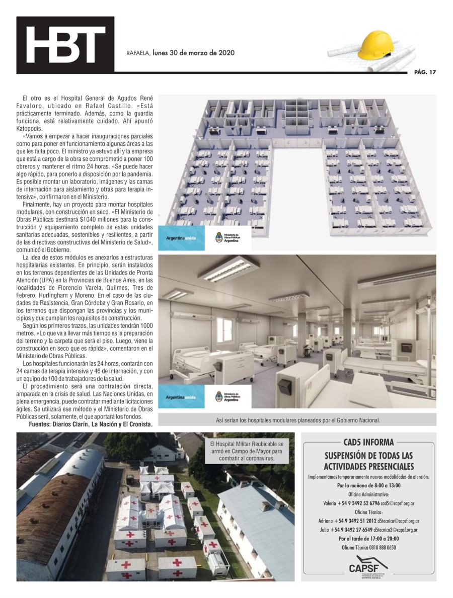 La obra pública estaba prácticamente frenada a cero, pero cuando comenzó la emergencia por el coronavirus, los pocos movimientos del sector se enfocaron en atender la pandemia.